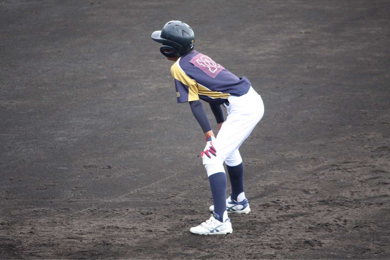 明善先攻、2アウトから、はるきがセンターへシングルヒット!