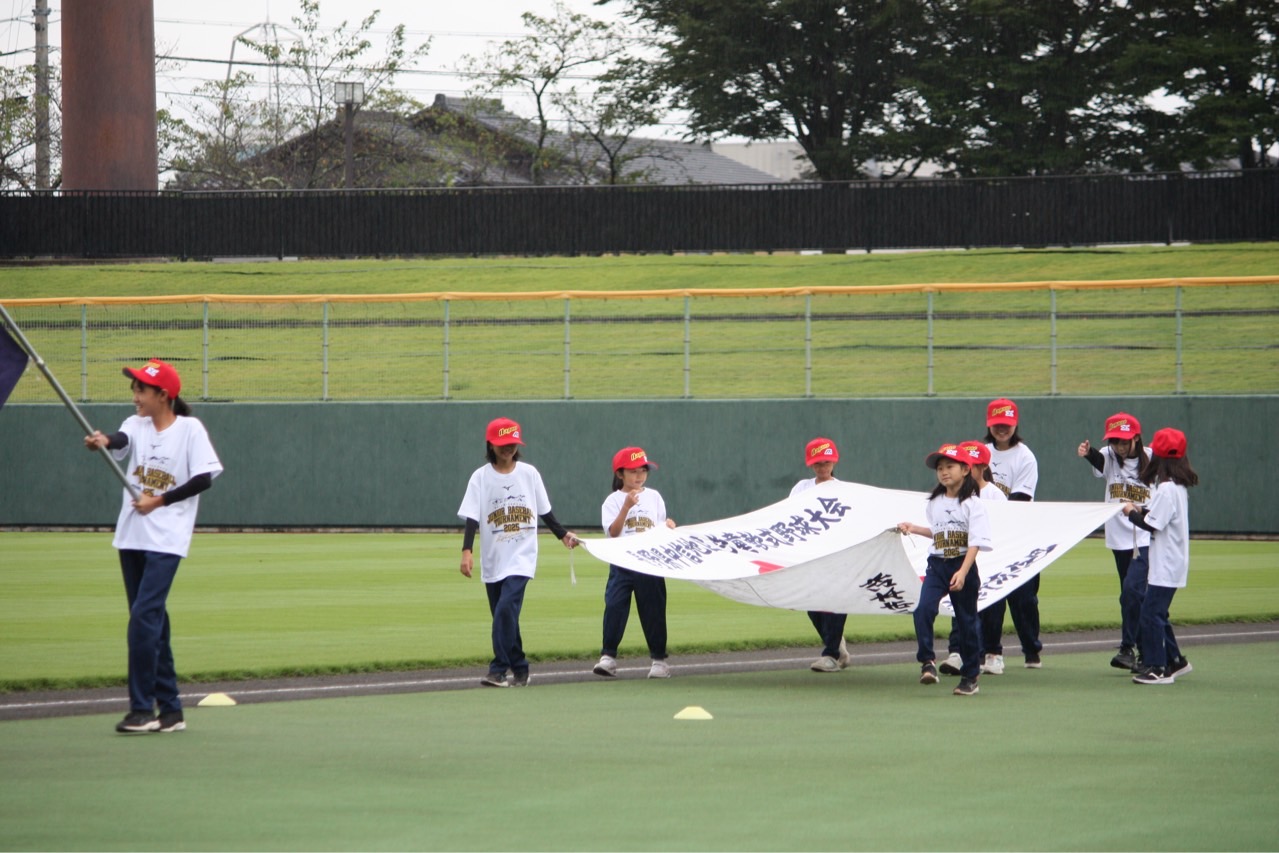明善小学校の女子の皆さんに、旗ガールをお願いさせていただきました。