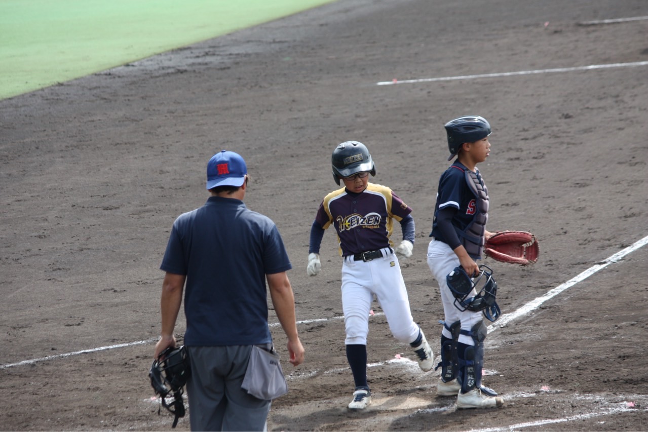 あゆむのピッチャーゴロで、はるきがホームでタッチされ、1アウト。